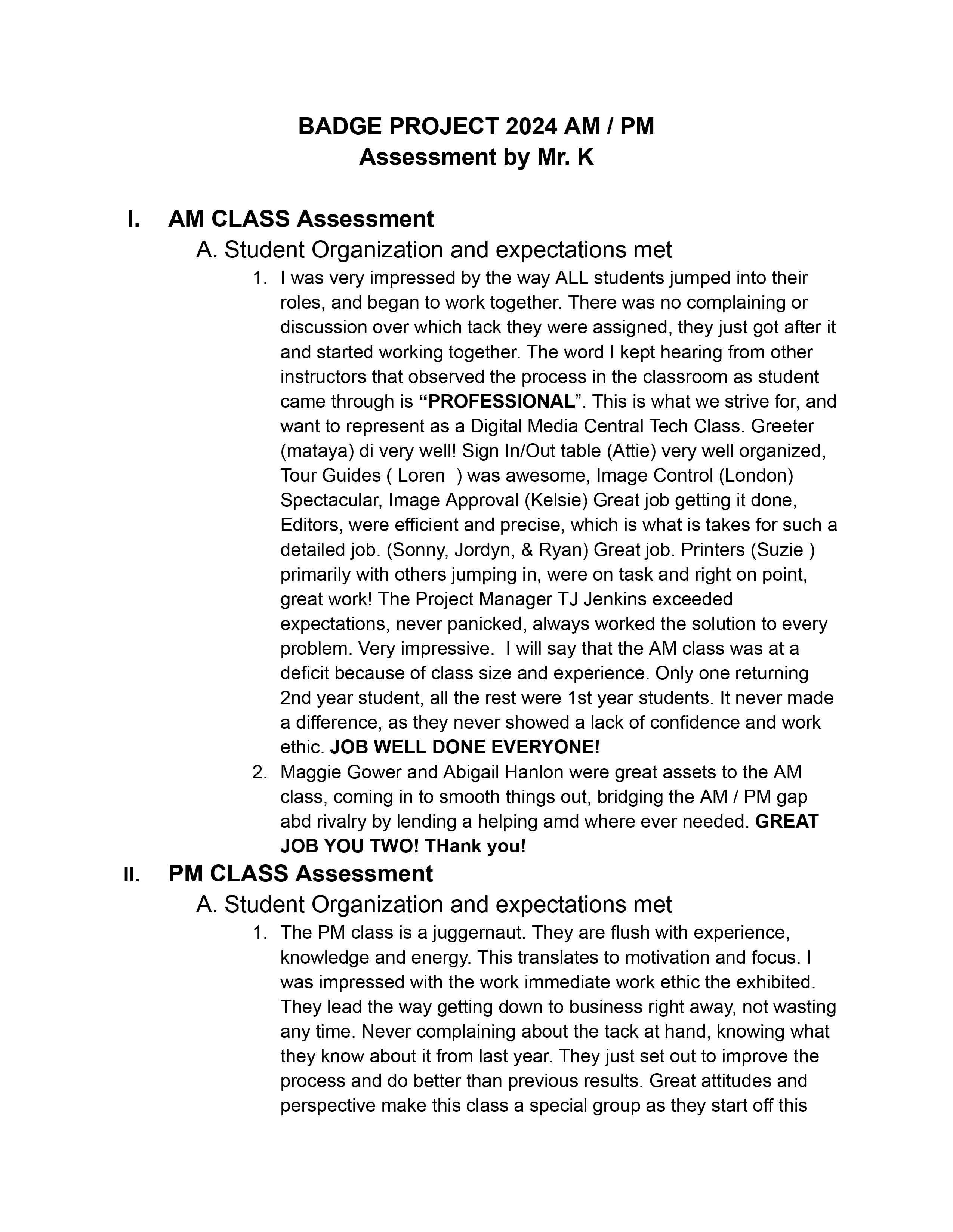 This is a short course so that you may review and give feed-back for the Student ID Badge Project. Your Likes/Dislikes and if you are a first-year student, how the process can improve for next year